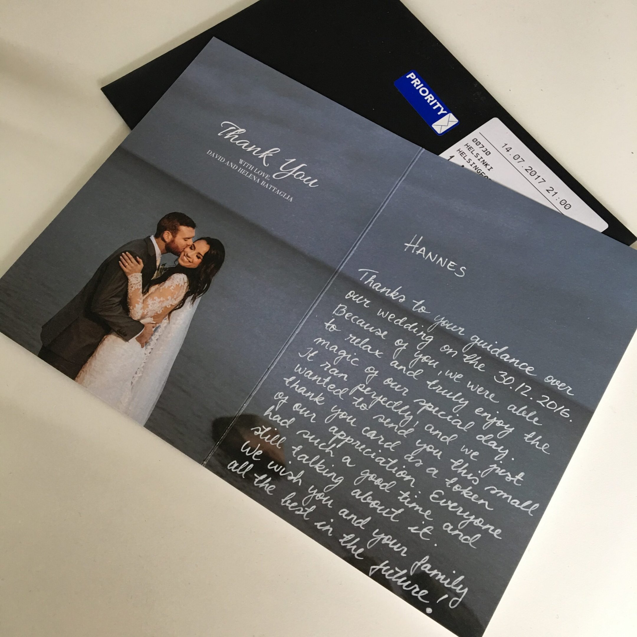 "Thanks to your guidance over our wedding. Because of you we were able to relax and truly enjoy the magic of our special day. It ran perfectly and we just wanted to send you this small thank you card as a token of our appreciation. Everyone had such a good time and still talking about it. We wish you and your family all the best in the future."